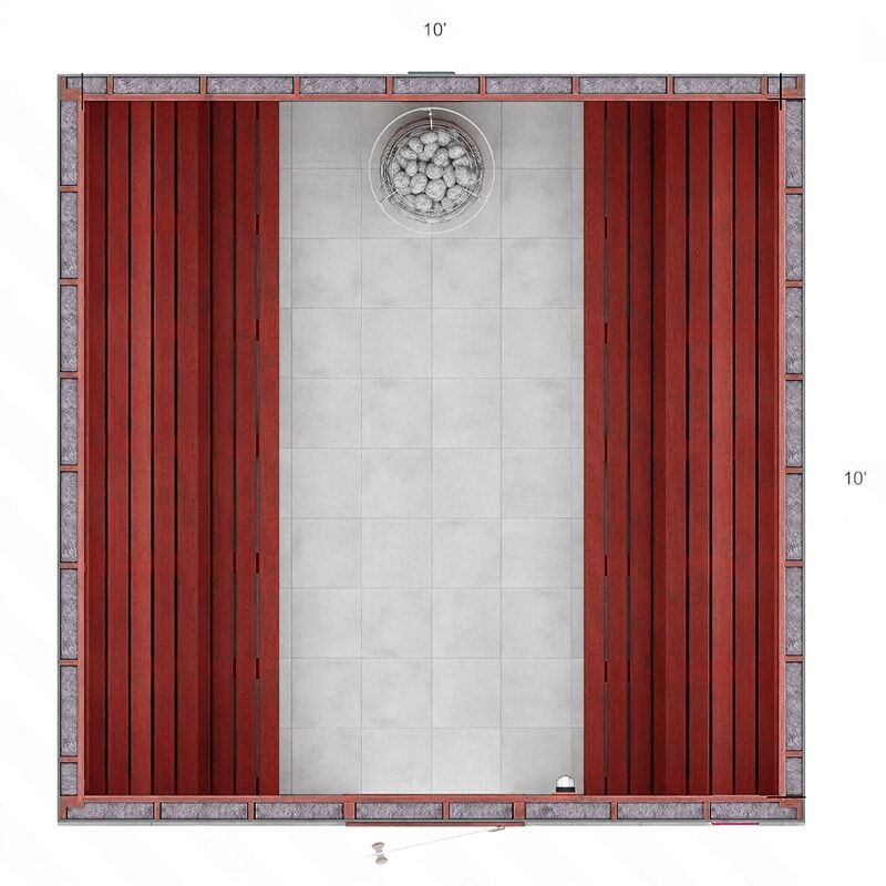 Each sauna kit comes with all the necessary materials for the walls, ceiling, and benches. In a 10x10x7′ S Custom Western Red Cedar Sauna Kit, we supply: