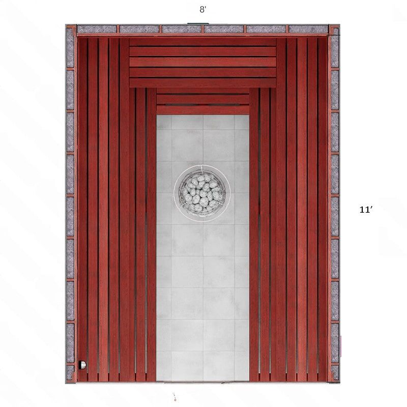 Each sauna kit comes with all the necessary materials for the walls, ceiling, and benches. In a 11x8x7′ U Custom Western Red Cedar Sauna Kit, we supply: