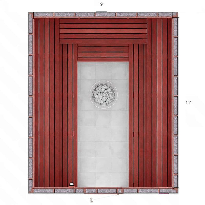 Each sauna kit comes with all the necessary materials for the walls, ceiling, and benches. In a 11x9x7′ U Custom Western Red Cedar Sauna Kit, we supply: