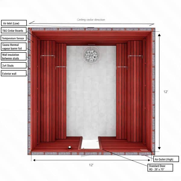 12×12 S Custom Indoor Sauna Kit
