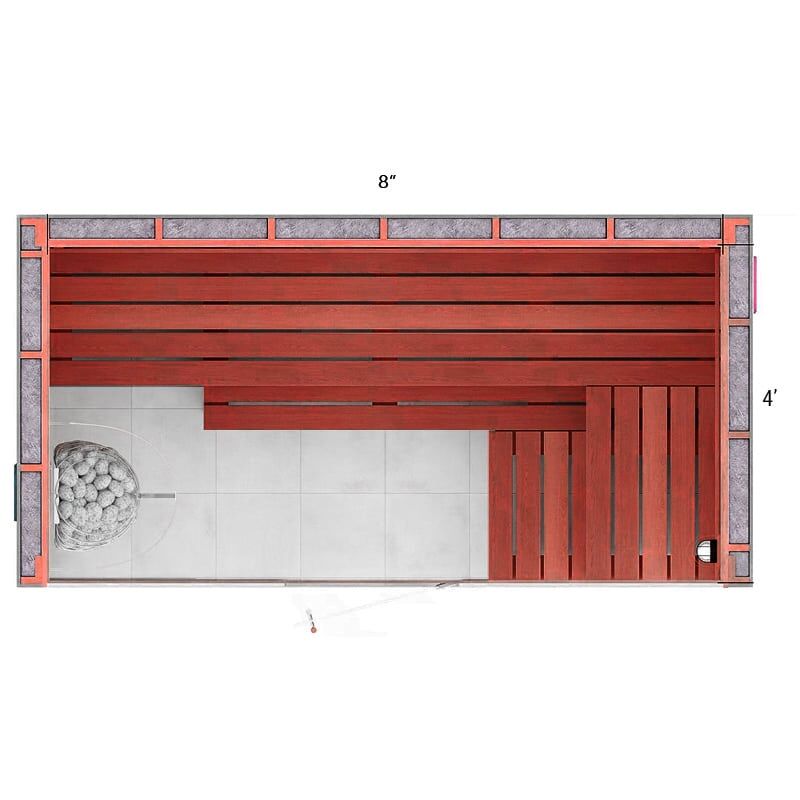 The 4x8x7 Custom Western Red Cedar Sauna Kit is our most popular sauna kit in Canada. Cedar sauna wood is strong, lightweight, and resistant to warping or shrinking over time. It also provides a cooler and more comfortable surface to sit and lean on.