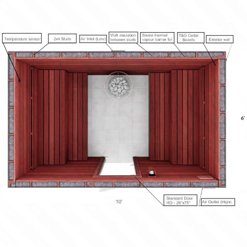 What’s Included in the 6x10x7 S Custom Western Red Cedar Sauna Kit: