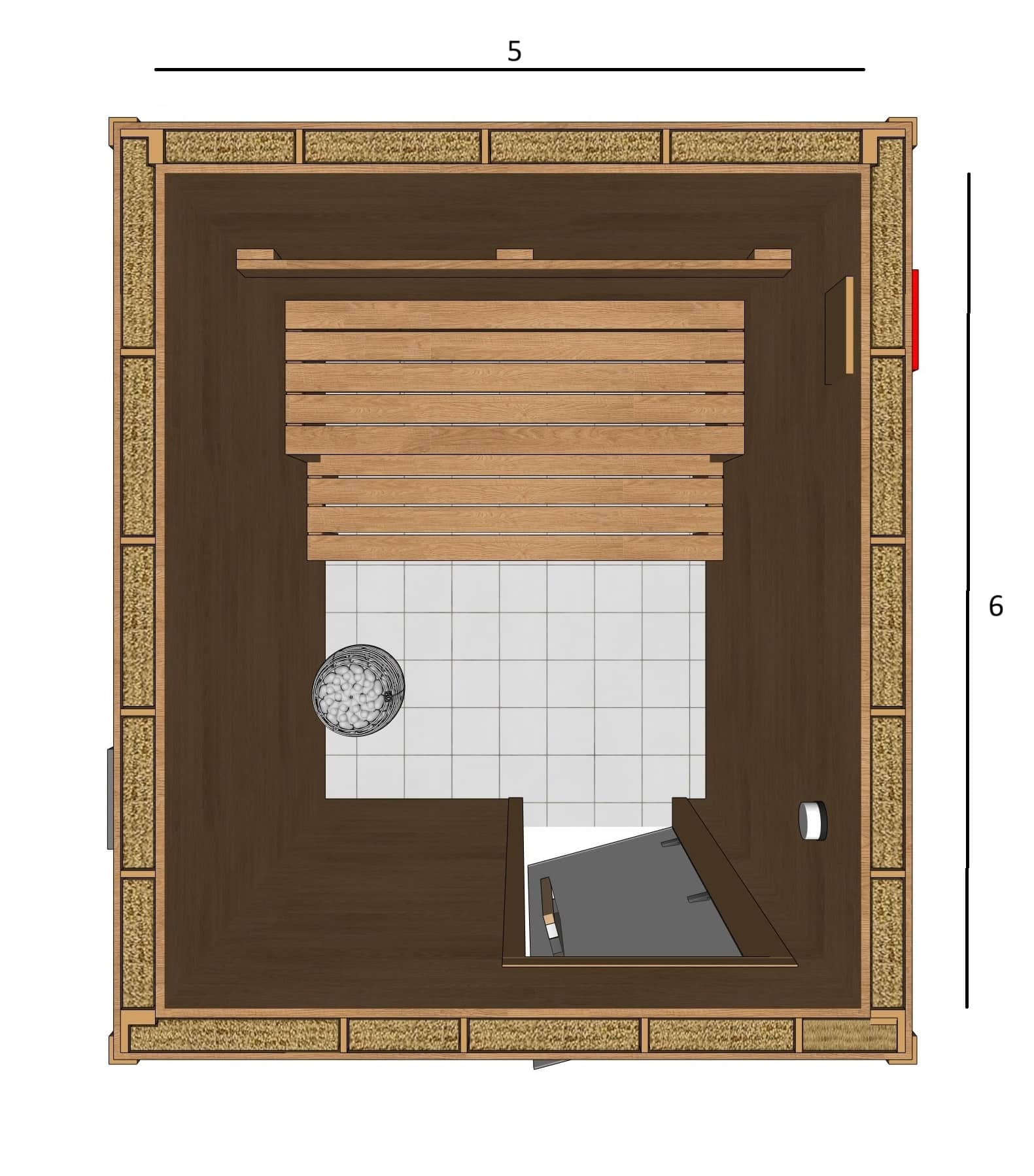 6×5 Custom Indoor Sauna Kit – lower bench 16 inch wide