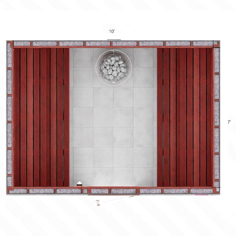 Each sauna kit comes with all the necessary materials for the walls, ceiling, and benches. In a 7x10x7′ S Custom Western Red Cedar Sauna Kit, we supply: