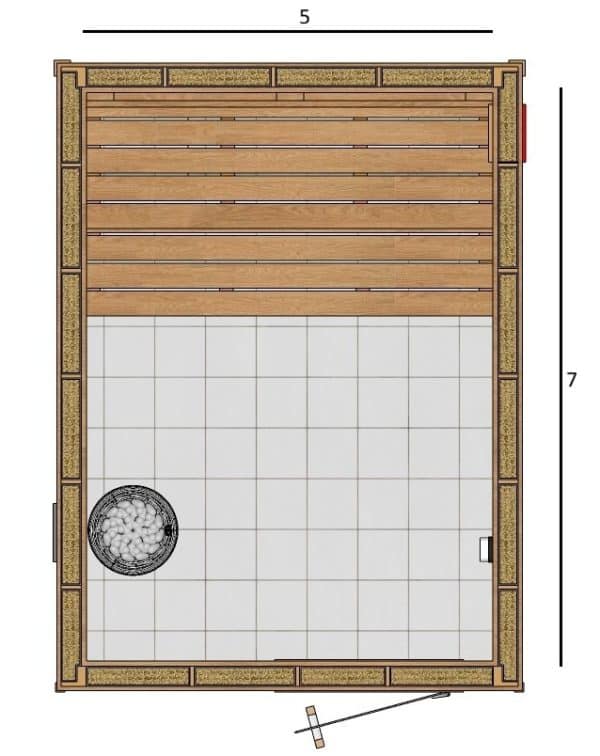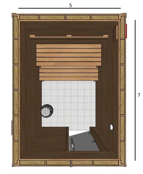 7×5 Custom Indoor Sauna Kit – lower bench 16 inch wide
