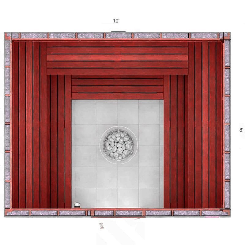 Each sauna kit comes with all the necessary materials for the walls, ceiling, and benches. In a 8x10x7′ U Custom Western Red Cedar Sauna Kit, we supply: