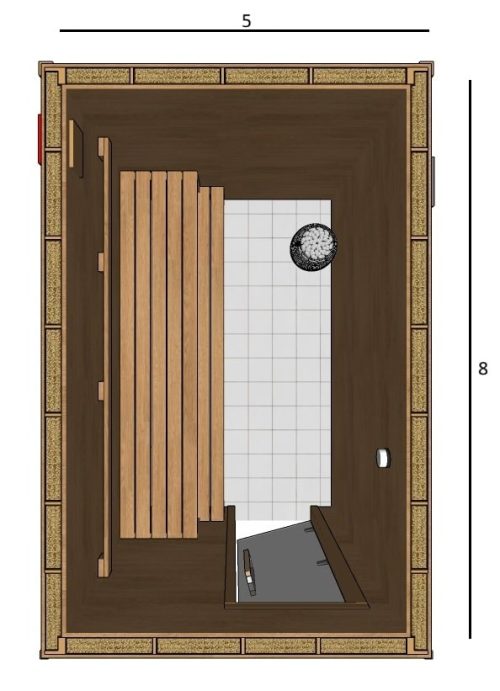 8×5 Custom Indoor Sauna Kit – lower bench 8 inch wide