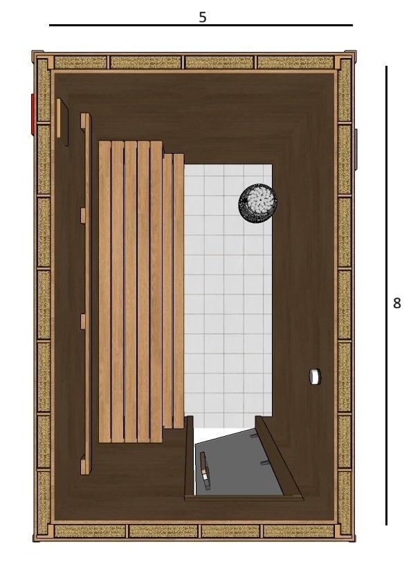 8×5 Custom Indoor Sauna Kit – lower bench 8 inch wide