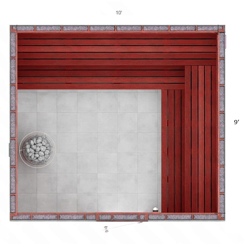 Each sauna kit comes with all the necessary materials for the walls, ceiling, and benches. In a 9x10x7′ Custom Western Red Cedar Sauna Kit, we supply: