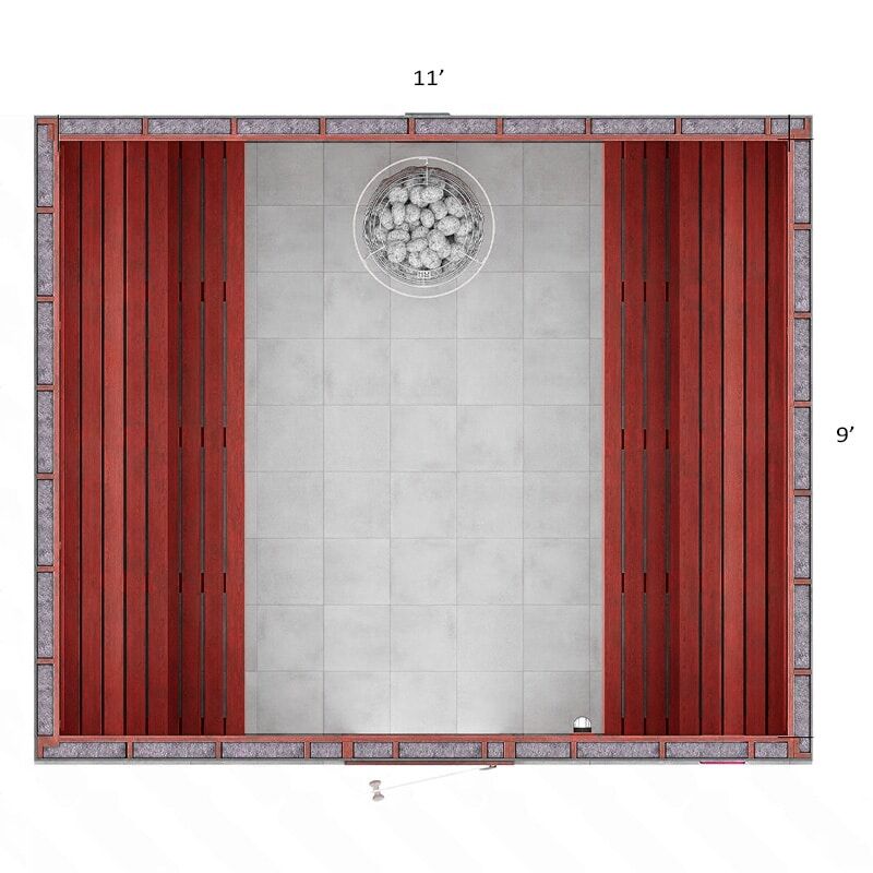 Each sauna kit comes with all the necessary materials for the walls, ceiling, and benches. In a 9x11x7′ S Custom Western Red Cedar Sauna Kit, we supply: