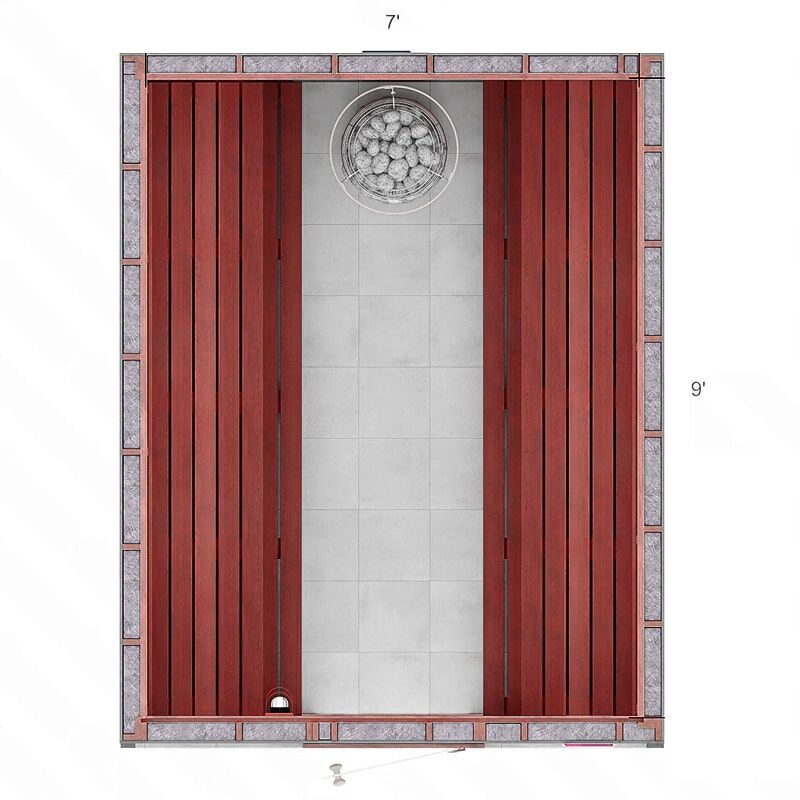 Each sauna kit comes with all the necessary materials for the walls, ceiling, and benches. In a 9x7x7′ S Custom Western Red Cedar Sauna Kit, we supply: