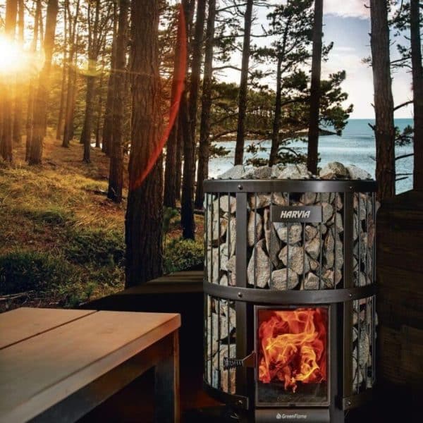 The Harvia Legend 240 GreenFlame Classic Wood-Fired Sauna Heater combines traditional wood-fired sauna heat with modern clean-burning technology. Its rugged black steel frame and large glass door create a warm, inviting atmosphere while delivering an authentic Finnish sauna experience.