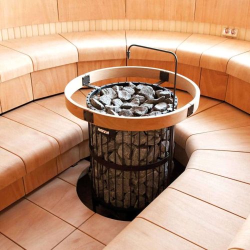 Its iconic round, open-frame design holds a large volume of stones, allowing heat to radiate evenly while enabling water to be poured over the entire stone surface. This produces long-lasting, smooth steam and stable humidity—even at lower temperatures.