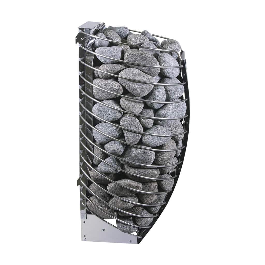 The Harvia Spirit 6 kW is a premium wall-mounted electric sauna heater, perfect for sauna rooms 177–294 cubic feet (5–8.3 m³). Its elegantly curved design and open stone structure create a modern yet natural look, especially when paired with round sauna stones.