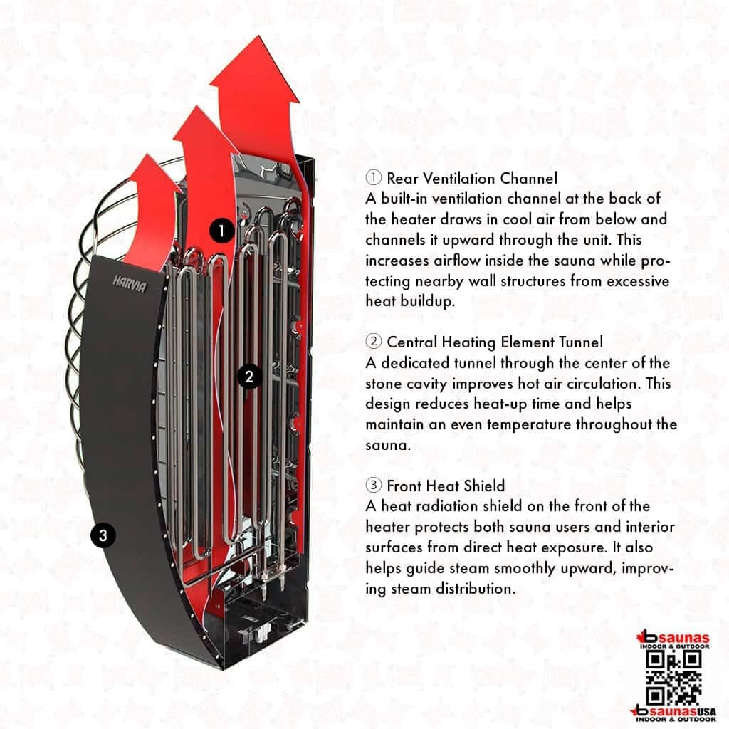 Designed for performance and safety, the Spirit heats your sauna quickly and evenly. An integrated safety sensor prevents the heater from turning on if items are placed on top, while two additional sensors monitor the heater and sauna temperatures to prevent overheating—ideal for worry-free use and remote starting.