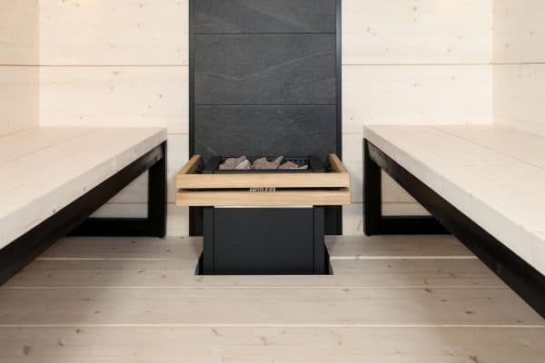 With a generous stone capacity, the Virta delivers smooth, even steam and stable temperatures. Its heating elements are positioned separately from the stones, improving airflow and extending component lifespan—ideal for frequent or extended sauna sessions. A front-access service hatch allows for quick maintenance without removing stones, making upkeep simple and efficient.