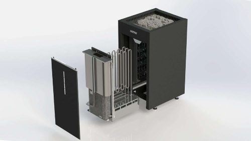 Designed for frequent use, the Virta Combi delivers smooth, even heat and consistent steam. Its heating elements are positioned separately from the stones to improve airflow and extend lifespan, and a front-access service hatch makes maintenance quick and simple without removing stones.