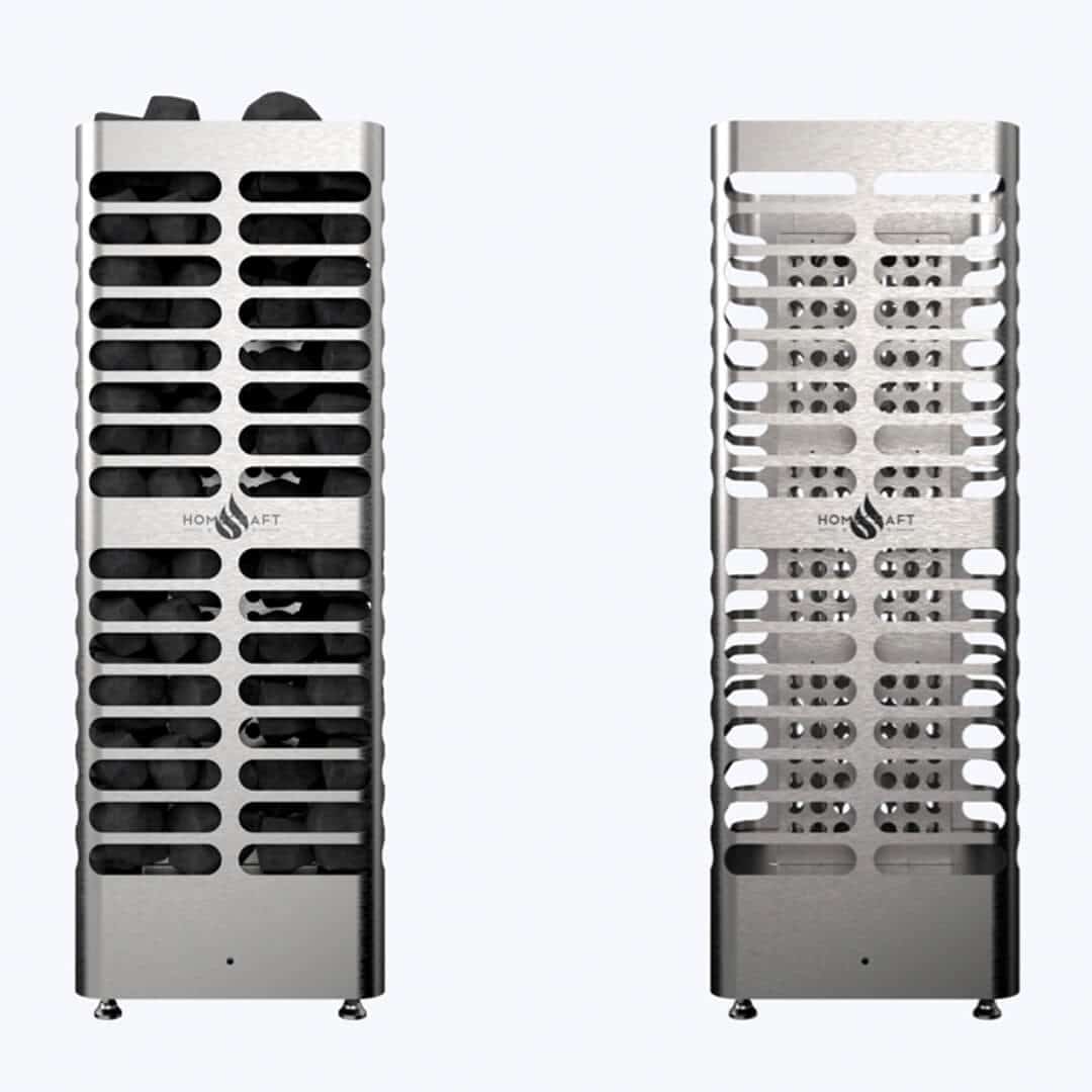 The Homecraft Revive 6 kW Electric Sauna Heater combines modern elegance with powerful performance to deliver an exceptional sauna experience. Its sleek tower design, capable of holding up to 200 lbs of sauna stones, features a unique free airflow system that allows for generous water infusion—producing abundant steam and elevating room humidity for a more immersive, rejuvenating session.