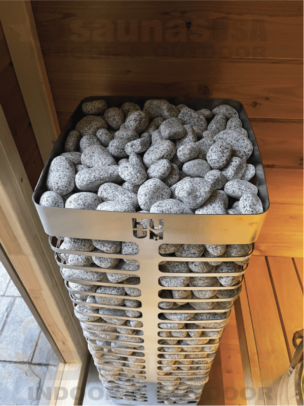 With a substantial 150 kg (331 lbs) stone capacity—equivalent to 10 boxes of HUUM stones—the Steel heater provides steady heat retention and consistent steam output. Its slim, rectangular shape allows installation in more compact layouts while maintaining HUUM’s recognizable design, making it suitable for both residential and commercial sauna settings.