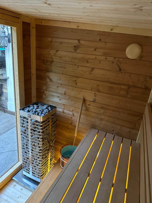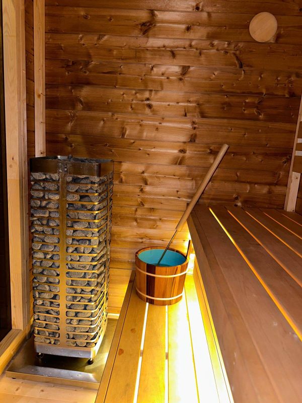 The Steel heater is compatible with the HUUM UKU control system, allowing Wi-Fi operation and remote scheduling when paired with the appropriate controller. Like all HUUM heaters, it operates at temperatures of up to 110°C, delivering even heat and producing smooth, consistent steam when water is poured over the stones.