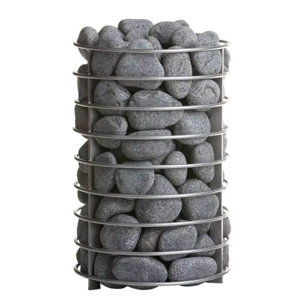The stone cage is mounted straight on the stove around the flue and filled with sauna stones. Thanks to the added stones, the surface for pouring water significantly increases, and that means less hot metal surfaces, that we wish to keep minimal in the sauna. The stone cage filled with sauna stones is also a decorative element matching with the sauna heater. Stone cages can be installed on top of each other.